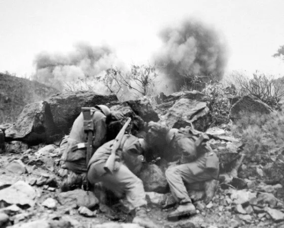 Under covering fire from artillery, machine guns, mortars, and rifles, Master Sergeant Benjamin F. Wilson gripped his weapon, let out a primal battle-cry, and ordered the men of I Company to follow him. Charging forward up a steep, muddy incline in the dead heat of the Korean summer, Wilson was met immediately by an unrelenting barrage of machine gun and mortar fire that ripped up the scenery around him in every direction. Fearlessly ignoring the imminent death whizzing around him in every direction, Wilson led his men up the hill, and chucking grenades, firing his rifle, and then diving headlong into the first enemy entrenchment. He came face-to-face with four guys carrying full-auto SMGs, wasted them, then waved for the rest of his team to come up and reinforce the position.